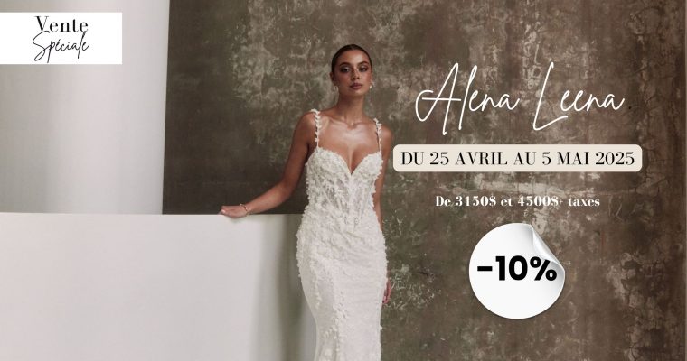 Découvrez la vente spéciale Alena Leena à Montréal, une occasion unique d’essayer les robes de mariée signées Alena Leena — une marque incontournable pour les mariées modernes, romantiques et audacieuses.