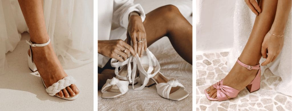 Remember that on the day, you will be on your feet, stomping, walking and dancing. You will have very little opportunity to sit down! Comfort is therefore essential. Having sore feet on your wedding day could indeed ruin this incredible day. So take the time to try on several pairs of shoes and walk around in them to choose the one that best suits your daily routine. If you don’t wear a lot of heels, play it safe and choose lower heels to last all day comfortably. We advise you to choose a pair of sandals with square heels, pumps that do not go beyond 7 cm, or wedges to have a good stability on D-day without suffering.