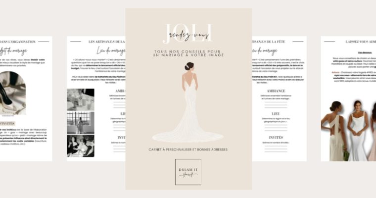 Ce carnet représente une nouvelle étape dans notre aventure et surtout un renouvellement de la promesse faite par DREAM IT YOURSELF envers les futur.e.s marié.e.s du Québec : nous sommes à vos côtés pour vous aider à réaliser l’une des plus belles journées de votre vie, une journée qui vous ressemble!