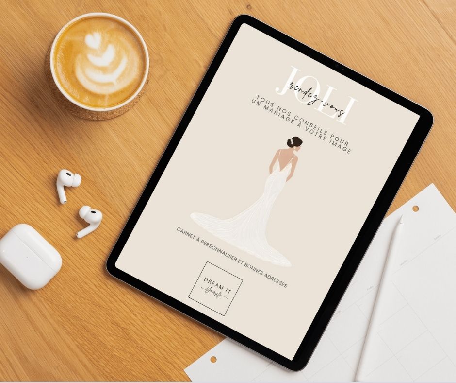 Que vous le choisissiez en version numérique ou papier, notre carnet JOLI RENDEZ-VOUS est un condensé de toutes les interrogations les plus fréquentes de nos mariées, des conseils les plus pertinents des expert.e.s du mariage, des pages bullets journal à compléter au fur et à mesure de vos préparatifs, sans oublier la partie souvenirs pour immortaliser les meilleurs moments de votre jour J. Vous y trouverez aussi un répertoire de tous nos coups de foudre avec les professionnel.le.s du mariage les plus talentueux.euses du Québec! C’est le meilleur moyen pour transformer toutes vos idées en réalité!
