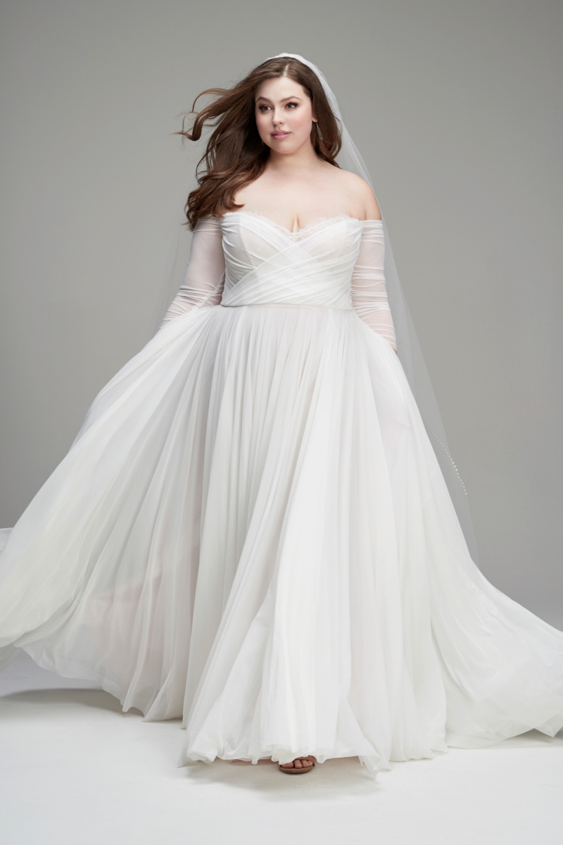 Nos robes Plus Size sont disponibles à l’essayage dans des tailles allant du 16 au 26. Certaines robes A-line ou à la coupe fluide peuvent aussi être essayées dans des tailles plus petites, si leur forme le permet. Notre équipe d’expertes est là pour vous conseiller et ajuster la robe au mieux durant l’essayage, afin que vous puissiez pleinement vous projeter.