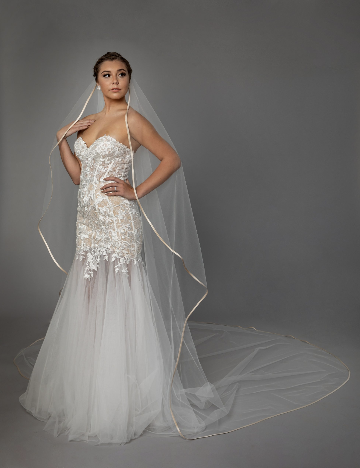 Magnifique voile avec un contour en satin.