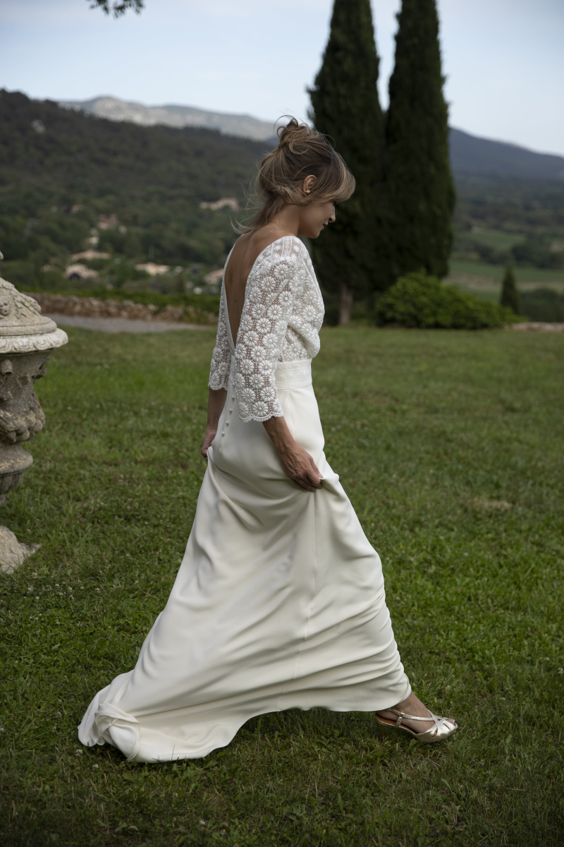 Les robes bohèmes se distinguent par leurs coupes fluides, leurs matières aériennes (tulle, mousseline, coton brodé), leurs manches poétiques et leurs détails délicats comme les dentelles artisanales, les dos nus ou les broderies florales. Elles sont parfaites pour une cérémonie en extérieur, un mariage champêtre chic ou un “yes” pieds nus dans le sable.